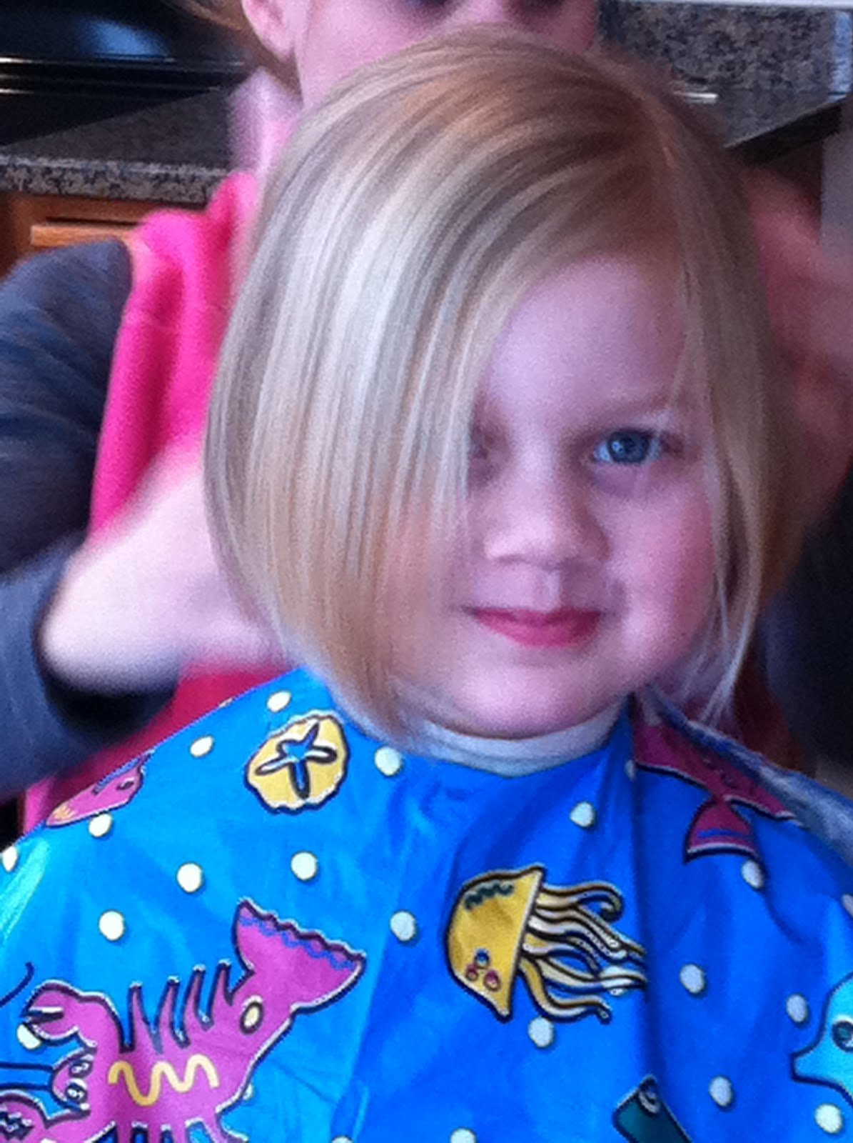 My girls have had long hair since...well...since it grew long! Lilly has had one small trim and Sylvi has not ever had a cut. I don't do this to torture them or do I force them. They have liked it or not noticed it until now. Lilly has been asking for approx. 4 months for a haircut to look like one of her friends , but I'm always careful to allow them time to think on a decision. So...soon after Sylvi started asking as well and lo and behold a couple of months later I scheduled the day.