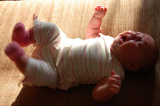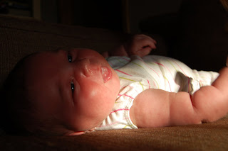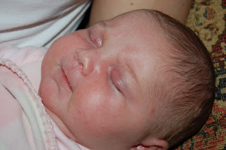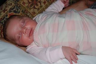 There are moments where I look at my sweet babe and think "you are so tiny (yes please don't laugh..), will you ever get big?" And then there are moments where I forget that she is less than a month old. To illustrate that I will tell a little tale: The other day I was driving with my mother on my first trip into public with only Pearl. It was great...just the two of us (and my mom) went to do a little shopping. And then my mom and I began to talk about Pearl and some new things she was doing, then I say "yes, like 3 weeks ago she was...bla bla bla," and then I realized...she isn't even 3 weeks old!!!! It's as if she is altogether brand new and months old. But nevertheless I am completely enamored by her..so here are some new pics