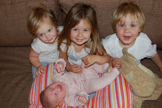You see I am at a standstill. My husband believes we may be done...I wish otherwise. However I have to say, he is my husband and I will feel immensely blessed if our family of 6 is complete. I respect his reasons and know that he is the parent who misses more than I. I do, however, hope that in the next 4 months or so to know for sure if this was it. For now all of the pregnant beauties walking around, little tiny babies crying, and cruel irony of life will just be part of the decision process. So bring it on...show me those bellies...let me hear the babies crying and remember the 4 miracles of life I have been blessed with!