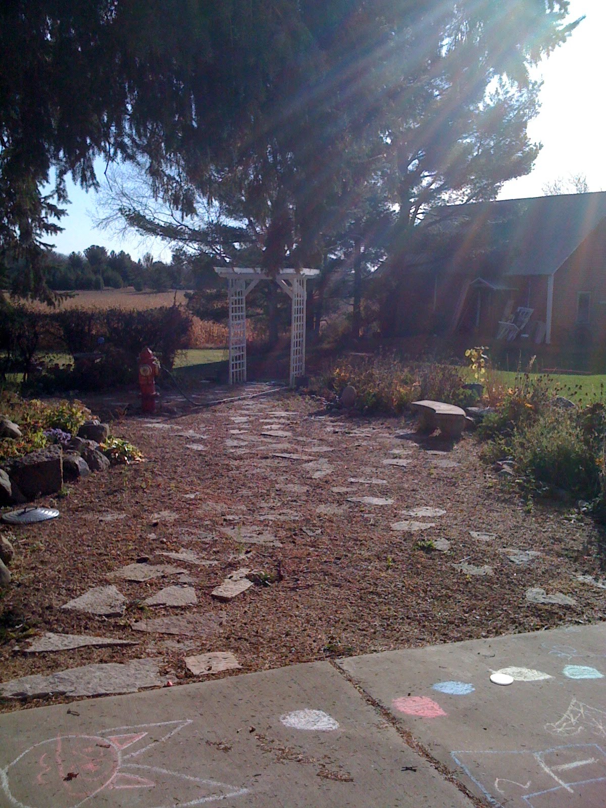 And this is the best room in the place. This is the view out the back entrance each and every day. This morning it was especially breath taking. Chilly yet Sunshine beating down. The gardens are pretty much done for the season...but they still beckon calm to my soul.