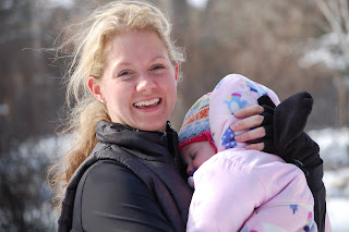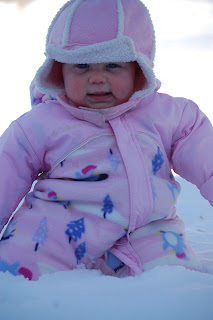 This week was incredibly warm for a mid February week. So while playing out of doors I did NOT decide to find ways to set Pearl down in the snow so that I could free up my hands. One of those options most certainly was NOT sticking her short, chubby legs into the hard surface of the snow to create a "stand" for her.
