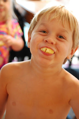 And of course...they all wanted their own. So I made some child-sized monkey teeth and watched the fun unfold. Just a quick glimpse...form the seldom moments I could compose myself enough to snap a photo!