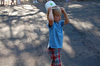 Finn crouched down next to his candy bucket completely devouring any and all candy! He knew that after the parade I would confiscate the bucket and that would be the end of that.